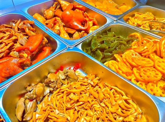 鹵藕片、鹵牛肚、麻辣雞胗、藤椒雞翅、泡椒鳳爪等。